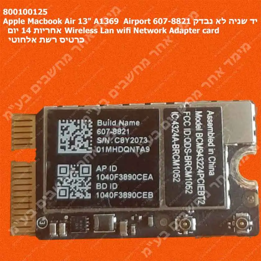 Apple Macbook Air 13 A1369 Airport 607-8821 יד שניה לא נבדק אחריות 14 יום Wireless Lan wifi Network Adapter card כרטיס רשת אלחוטי